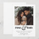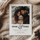 Esta tarjeta de vacaciones combina la simplicidad moderna con el encanto estacional. Cuenta con una foto cuadrada que puedes subir para mostrar tu momento favorito juntos como pareja. ¡Puede ser tu familia, tú como pareja y también con tu mascota! Sus nombres están en un diseño tipográfico en negrita con un hermoso ampersand. Debajo, sus deseos personalizados de vacaciones están elegantemente mostrados en dos fuentes complementarias, junto al año en la parte inferior, compartiendo sus deseos de Navidad con sus seres queridos este año.