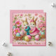 Una pintura vintage de dos conejitos de Pascua, rodeados de hermosos huevos de Pascua y flores. Esta sería una excelente tarjeta para cualquier persona que ame coleccionar todos los recuerdos de Pascua. Creará recuerdos felices. Espacio para escribir en la parte posterior de la tarjeta debajo de una versión pequeña de la imagen frontal. Creado con la ayuda de BING.