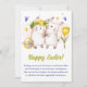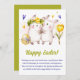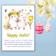 Celebra la alegría de Pascua con nuestra encantadora tarjeta de felicitación de vacaciones! Adornada con deliciosos ilustraciones acuáticos de lindos conejillos sosteniendo manos, un vibrante tulipán amarillo, un huevo de Pascua y corazones extravagantes morados y amarillos, esta carta capta el espíritu de la temporada. Envíe sus más cálidos deseos de Pascua a amigos y familiares con este adorable y acogedor diseño. ¡Es la manera perfecta de difundir el amor y la felicidad en esta época especial del año!