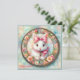 Una pintura vintage del conejo de Pascua que lleva lazos rosas y un collar. El conejo está rodeado de deliciosas flores mixtas. Esta sería una excelente tarjeta para un niño que ama coleccionar todos los recuerdos de Pascua. Creará recuerdos felices. Espacio para escribir en la parte trasera de la tarjeta debajo de una versión pequeña de la imagen frontal. Creado con la ayuda de BING.