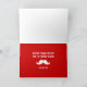 ¿Te encanta el humor de bigote? Diviértete enviando estas divertidas tarjetas de felicitación de Navidades esta temporada navideña a tu familia y amigos. PASEANDO POR LA NIEVE CON RETRO, FUNNY BLANCO MUSTACHE EN UNA CARTA DE Navidades DE FONDO ROJO. MOVIEFUN©