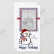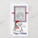 Un muñeco de nieve patriota Navidad sostiene una bandera estadounidense. Personalizar con su propia foto y texto.