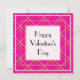 Desea a alguien especial un Feliz Día de San Valentín con esta tarjeta brillante y atractiva. Inspirada en el estilo Art Déco, la tarjeta rosa muestra un patrón geométrico y un saludo de 'Feliz Día de San Valentín' en la parte delantera, con el mismo patrón más espacio en blanco en la parte posterior para su propio mensaje.