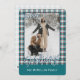 Esta tarjeta de saludo navideña se destaca por su diseño elegante y único. Cuenta con un saludo atemporal de "Felices Fiestas", personalizable según su preferencia, sobre un diseño de patrón de cuadros en azul turquesa, blanco y rojo granate. La parte frontal ofrece espacio para el nombre de su familia, foto y saludo estacional personalizado, mientras que la parte trasera es perfecta para agregar un mensaje estacional personalizado o poema. Es una forma elegante de enviar sus deseos navideños.