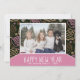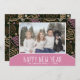 Modelo de formas de una línea rosada moderno y divertida foto tarjeta de vacaciones de año nuevo 2026. Tarjeta de vacaciones simple y divertida con una foto personalizado, texto Feliz año nuevo, nombre de su familia y año. Formas dibujadas a mano en una línea rosa.