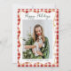 Tarjeta Festiva Patrón de Gingham Rojo y Oro Felices Fiestas 1 Fot