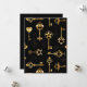 Patrón incomparable de llaves antiguas, doradas y de silueta sobre fondo negro.