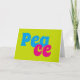 Fondo verde lima con las palabras Paz. Tarjeta de felicitación en blanco por dentro.
