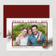 Agrega tu foto favorita con esta tarjeta de vacaciones rústica con dibujos de piña y agujas. Rojo sólido en la parte posterior.
