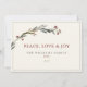 Esta elegante tarjeta de vacaciones "Paz, Amor y Alegría" presenta un moderno y minimalista verdor de acuarela con bayas rojas sobre un fondo neutro. Un borde gris delgado enmarca la tarjeta. El texto se personaliza fácilmente con su elección de saludo, nombre de la familia y año.