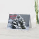 Evergreen pesado con nieve trae el deseo de paz para los Navidades.