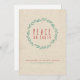 Este diseño presenta las palabras "Paz en la tierra" en letras rojas mayúsculas dentro de una corona verde sobre un fondo de papel kraft. Personaliza tu saludo y nombre a continuación