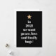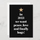 Tarjeta Festiva Peace, Love & Finally Hugs Humor Quote 2021