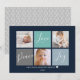 Elija sus propios colores en esta plantilla de fotos de bloques de color moderna. Tarjeta de saludo de vacaciones no denominacional con cubos de color geométrico. La plantilla de la tarjeta de foto de seis marcos se puede usar para seis fotos diferentes o con los bloques de color situados entre ellas. Texto de escritura a mano con una palabra Paz, Amor, Alegría diseño en cada uno de los tres cubos de color diferentes y tres fotos y divertido patrón triangular en el reverso. Esta tarjeta de felicitación de fotos se puede cambiar y usar para cualquier ocasión, seleccionar un color distinto del blanco si se prefiere y cambiar o eliminar bloques de color según sea necesario.