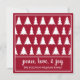 Tarjeta Festiva Peace Love Joy Modern Burgundy White Tree Pattern
