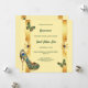 A beautiful, vibrant and luxurious design featuring a pale yellow background on which vertical faux gold bands appear with decorative golden swirls and peacock feathers. Small butterflies are flitting around and a stunning golden stilleto shoe adorned with peacock feathers appears in the bottom left corner. This graphic may be deleted if not required. Forest green text templates appear down the middle of the 5x7 invitation and are fully customizable. The back has the same design, and additional templates for extra information you may want your guests and family to know. If not required, delete the wording to leave the back with the design only. This stylish, glam, elegant and traditional design is ideal for any 15th birthday Quinceañera or special milestone celebration.