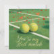 Tarjeta Festiva Pelota de tenis con AMOR en cancha azul