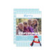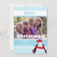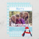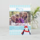 Christmas flat photo card with snowflakes on blue and cute penguin image. Personalize with your own photo and text. Click "customize it!" to reposition or resize your photo if required.