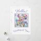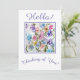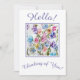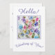 Hello Thinking of You Card para enviar en cualquier ocasión - Whimsical Butterfly y jardín de flores pintado de patas de perro sumergidas en pintura - colores de verano de azul, rosa, verde, naranja y morado. Una invitación única para graduaciones, cumpleaños, aniversarios, duchas de novias o bebés, jubilaciones o reuniones - imágenes de la pintura acuarela original de los diseñadores.