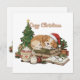 Tarjeta Festiva Perrito dormido y libros navideños acogedores vint