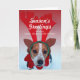 Tarjeta Festiva Perro de caza que se sienta en el reno que lleva