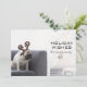 Tarjeta Festiva Perro de cerdo con cuernos de reno en el sofá