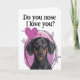 Tarjeta del día de San Valentín del Dachshund personalizada. Opciones de personalización: cambiar saludo, nombre del perro, color de fuente.