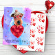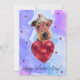 Tarjeta de vacaciones de perro de El día de San Valentín azul púrpura Airedale | Buscando la manera perfecta de mostrar a sus seres queridos cuánto le importa este El día de San Valentín? No busque más que nuestra graciosa tarjeta de vacaciones de perro! Esta adorable tarjeta muestra a un perro lindo con un gorra fiesta, grandes y divertidos lentes rojos, garras y corazones rojos diciendo Feliz Día de San Valentín. Ya sea que lo envíes como un regalo a un amigo o miembro de la familia que ama a sus perros, ¡esta tarjeta es un regalo lindo para todos los amantes del perro!