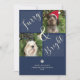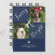Presentamos la tarjeta navideña azul de la marina azul azul de peluche 2 Photo Dog - la forma perfecta para que los amantes de las mascotas envíen saludos festivos! La parte delantera muestra dos ranuras para fotos de personalizable para caracterizar a los perros, con un elegante texto de guión que explica "Furry & Bright" para un toque de encanto estacional. La parte trasera tiene un divertido patrón de papel pintado de color azul marino y crema, añadiendo un toque único. Ideal para los padres de los perros, esta tarjeta es totalmente personalizable para incluir a tus amigos peludos, ¡por lo que es un placer especial para las vacaciones! Feliz Diseño de Ann.