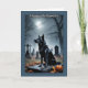 Tarjeta Festiva Perro Guardián Negro en Cementerio en Halloween