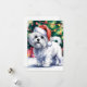 Tarjeta Festiva Perro maltés blanco con sombrero de Santa
