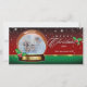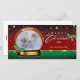 Las Felices Navidad en fondo verde y raya roja en una tercera más bajo, añaden su foto dentro del globo de la nieve y su apellido. Accesorio de oro en el top y la parte inferior