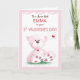 ¡Celebra con una niña dulce en su primer El día de San Valentín! Este pequeño oso de peluche está enviando abrazos y corazones cálidos y cariñosos. Personalizar con su nombre para una tarjeta de primer El día de San Valentín personalizada.