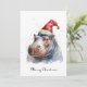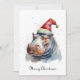 pintura acuarela de un hipopótamo con un gorra rojo de invierno al estilo navidad