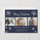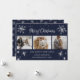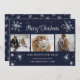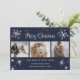 Magical tarjeta de Navidades de collage de fotos azul con copos de nieve y estrellas en la parte delantera y brillantes copos de nieve en la parte trasera. Personalice fácilmente estas 3 tarjetas de Navidades de fotos con sus imágenes, texto y nombre de familia.