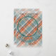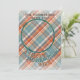 Única, clásica, bonita y decorativa tarjeta de felicitación de temporada navideña. Con diversión Feliz Día de Acción de Gracias en un cálido y colorido color azul verde azulado y naranja color rojo color lona tartán. Con espacio para personalizar o personalización con tu propia foto alegre y nombre familiar en la parte delantera de la tarjeta, y un poema de bienvenida de temporada de personalizable en el reverso de la tarjeta con opción para los nombres de los miembros de la familia.