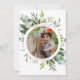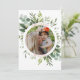 Navidades de texto de este personalizado | tarjeta fotográfica de vacaciones con eucalipto de color de agua pintado, hojas verdes e impresiones verdes sobre la parte posterior de las mantas de invierno. Envíe vítores de vacaciones a su familia y amigos.