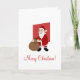 Diseño con ilustracion de Santa Cláusula cargando bolsa con regalos, Navidades diseño de vacaciones para los niños de fondo rojo,