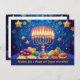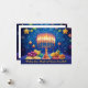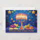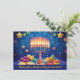 Presentamos la tarjeta de bienvenida "Festival de las Luces"! Esta carta vibrante y festiva es perfecta para celebrar Hanukkah. En la parte delantera hay una hermosa menorah ilustrada con velas encendidas, que arrojan un cálido resplandor sobre un fondo azul profundo adornado con estrellas y torbellinos festivos. En la parte inferior, se representan con gran detalle los tradicionales productos de Hanukkah como el sufganiot (donut rellenos de gelatina), el gelt de chocolate y los lagos, lo que contribuye a la celebración. La frase "¡Deseándote un Brillante y Joyous Hanukkah!" está elegantemente escrita al otro lado del frente, invitando a los compradores a personalizar este mensaje para sus seres queridos. Lo que diferencia esta tarjeta es el espacio de texto del personalizable en la parte posterior. Añade tu propio mensaje de corazón para convertirlo en un regalo verdaderamente personal y reflexivo para tus seres queridos. Esta carta no es solamente una hermosa pieza de arte sino también una manera única de difundir alegría y calor durante la temporada de vacaciones. ¡Ideal para quien desee darle un toque personal a sus saludos de Hanukkah!
