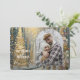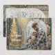 Esta tarjeta de vacaciones es única y clásica, con un diseño decorativo moderno. Incluye una encantadora sección "Amor y bendiciones de", que permite la personalización con una foto y los nombres (o apellido) de su elección. El diseño muestra una elegante escena de invierno abstracta inspirada en Gustav Klimt, en una combinación de colores vivos. Además, la parte posterior de la tarjeta incluye un poema de bienvenida de temporada para personalizables.