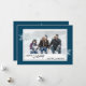 Única, clásica, moderna, bonito y decorativa tarjeta de vacaciones. Cute Happy Holidays saluda texto y habitación para personalizar o personalización con una foto, nombre de familia (o nombres individuales) y mensaje de tu elección, enmarcado por dos copos de nieve de color gris plateado sobre un elegante fondo de color negro de vaqueros vaqueros vaqueros de denim azul.