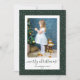 Tarjeta Festiva Personalizado Green Gold Snowy Photo Merry Christm