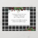 Única, clásica, moderna, bonito y decorativa tarjeta de vacaciones corporativa. Cute el texto de bienvenida de Happy Holidays y habitación para personalizar o personalización con un mensaje de su elección en la parte trasera de la tarjeta. Enmarcado por bayas rojas de vino de Borgoña y ramos de flores de color verde oscuro sobre un elegante fondo de color negro y blanco trenzado de color escocés de gingham.