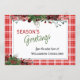 Única, clásica, moderna, bonito y decorativa tarjeta de vacaciones corporativa. Cute el texto de bienvenida de Happy Holidays y habitación para personalizar o personalización con un mensaje de su elección en la parte trasera de la tarjeta. Enmarcado por bayas rojas de vino de Borgoña y ramos de flores de color verde oscuro sobre un elegante fondo de color traviesa trenzado blanco y rojo de fondo de gingham.
