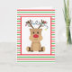Tarjeta Festiva Personalizado Red Green Candy Stripes Reindeer QR