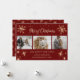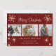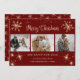 Magical tarjeta de Navidades de collage de fotos rojas con copos de nieve y estrellas en la parte delantera y brillantes copos de nieve en la parte trasera. Personalice fácilmente estas 3 tarjetas de Navidades de fotos con sus imágenes, texto y nombre de familia.