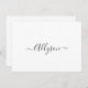Personaliza tu nombre en texto de guión negro y mensaje (o déjalo en blanco) sobre fondo blanco. Haga clic en “Personalizar” para cambiar los colores y estilos de fuente.