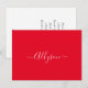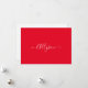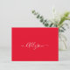 Personaliza tu nombre en texto de escritura blanca y mensaje (o déjalo en blanco) sobre fondo rojo. Haz clic en “Personalizar” para cambiar los colores y estilos de letra.