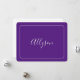 Personaliza tu nombre en texto de escritura blanca en fondo púrpura real con el mensaje en la parte posterior, o deja en blanco para la nota escrita a mano.
