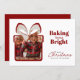 Capture the joy of the holiday season with this charming Christmas card. Featuring a delightful gift box cutout to showcase your favorite family photo, this card is perfect for sending warm wishes to loved ones. The bold red text proclaims "Baking Things Bright," adding a festive and playful touch. Below, a classic "Merry Christmas" script is accompanied by your family's name, making it a truly personal greeting. The clean white background and elegant red accents create a sophisticated yet heartwarming design, ideal for sharing your holiday cheer and creating lasting memories.
